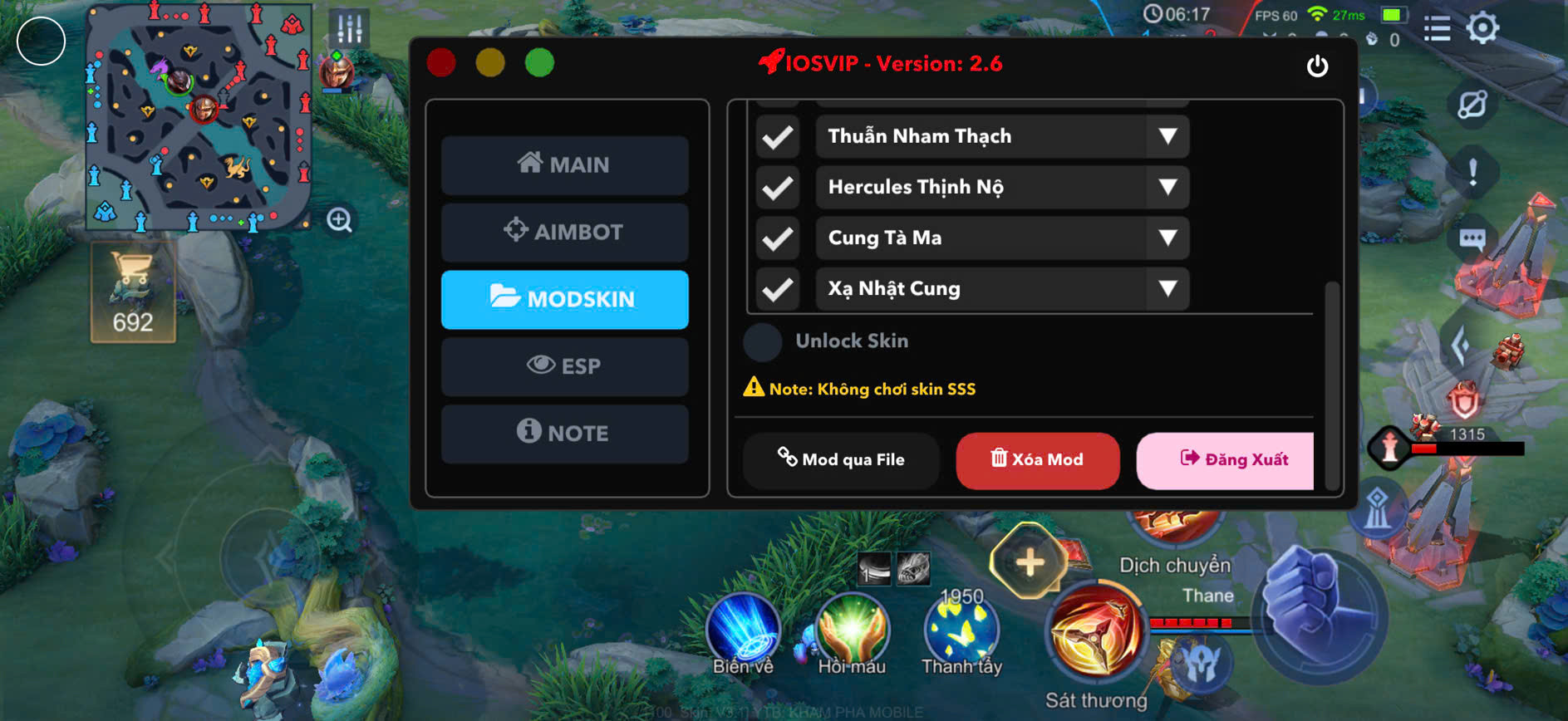 Menu Mod Skin Qua Tệp + Auto Bán Đồ